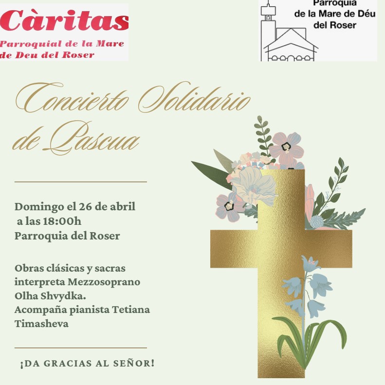 El Diumenge, 26 d’abril a les 18.00h a la Parròquia de la Mare de Déu del Roser de Cerdanyola del Vallès es celebrarà el Concert Solidari de Pasqua, una proposta musical excepcional.