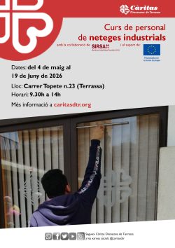 El curs de neteges industrials començarà el mes de maig amb l’objectiu de dotar als participants de coneixements en neteja, tractament i manteniment de mobiliari, vidres, terres, parets i sostres en edificis i locals, i també de tècniques i procediments de neteja amb utilització de maquinària.