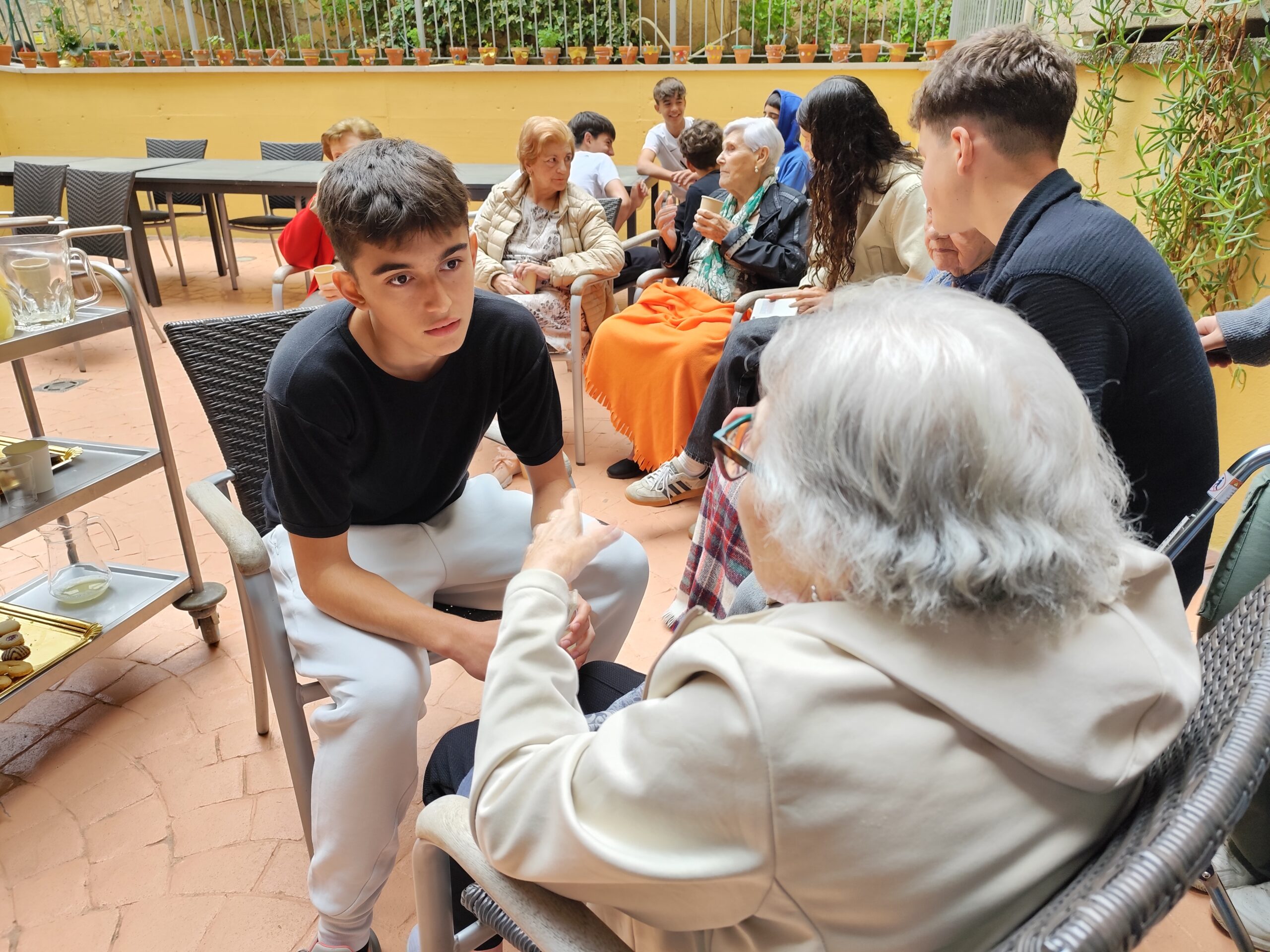 Cada setmana, alumnes de 3r d’ESO visiten la residència per compartir activitats, converses i vivències amb els residents, per parelles intergeneracionals. Aquestes trobades han generat vincles profunds que van més enllà del servei comunitari obligatori, com testimonien les joves: “Jo no tinc avis i per mi ha estat molt bonic compartir aquests moments” o “Esperava tota la setmana per venir a veure’ls”.